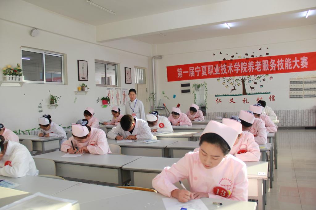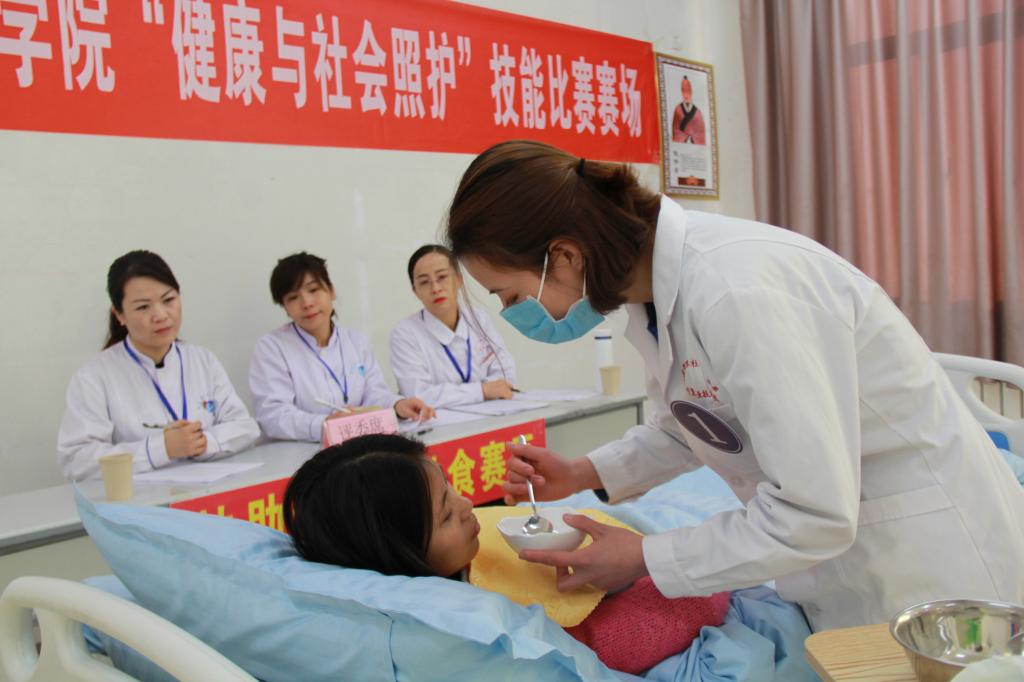 本届比赛分为“健康和社会照护”和“养老服务技能”两组,分别设血压测量、血糖测量、协助卧床老人进食、颈肩部推拿按摩和口腔护理、轮椅间转移几大比赛项目,并设置理论考核和技能操作考核两部分。选手们在比赛过程中表现出了良好的技能水平和职业素养,比赛将“以赛促教、以赛促学、以赛促改”作为目标,坚持“公平、公正、公开”的原则,确保比赛顺利进行。要求选手们在比赛期间以工作任务为导向,按照专业岗位工作要求,对患者实施连续的科学照护,培养员工的创新、创业意识和独立工作能力。 经过激烈角逐,健康与社会照护组马倩倩、金娟等同学;养老服务技能组王越、齐转丽同学荣获此次比赛一等奖。