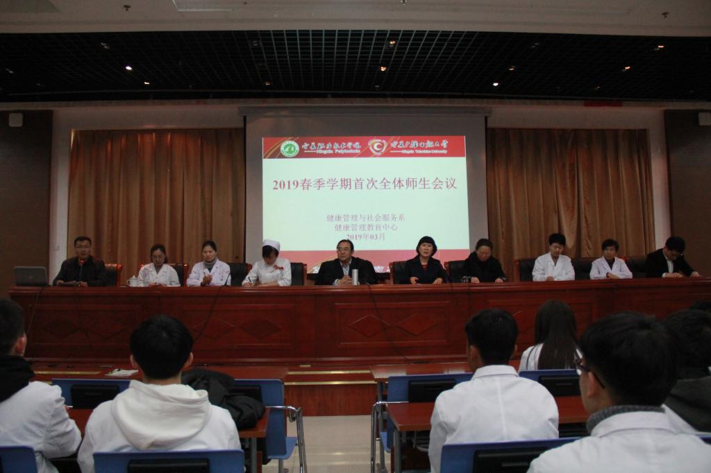 3月3日傍晚,健康管理与社会服务系、健康管理教育中心在竞贤楼三楼会议厅举行“2019春季学期首次师生会议”。全系师生及邀请的外聘教师医生共约两百人参加会议。