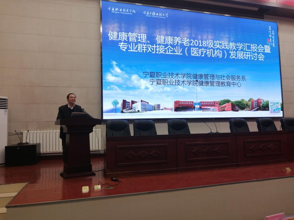 系主任马东华做了总结。他讲到,此次会议既是一次调研会,也是深入改革的推进会,看到同学们的成长很高兴,专业群发展日趋完善很欣慰。健康管理专业群自开办起就以“承传国粹、健康报国、孝亲尊师、精术济人”为宗旨,以“立足宁夏、服务宁夏、开拓首都、打造品牌”为目标。感恩企业行业专家学者们9年来的指导与支持,不断改革完善“1+0.5+1+0.5”的教学模式,经历过数轮社会与企业行业检验,该模式已日臻完善成熟。同时国家健康中国2030和自治区健康宁夏对我系专业群的人才培养提出了新的要求,要求各教研室尽快根据此次研讨会专家们给出的建议及时修缮我们的人培方案。