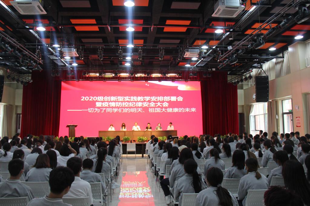 8月30日下午,健康管理与社会服务系在纺织实训楼一层报告厅举行“2020级创新型实践教学安排部署会暨疫情防控纪律安全大会——一切为了同学们的明天、祖国大健康的未来”活动,系领导、全体无课教师和2020级各专业同学参加,活动由系主任马东华主持。