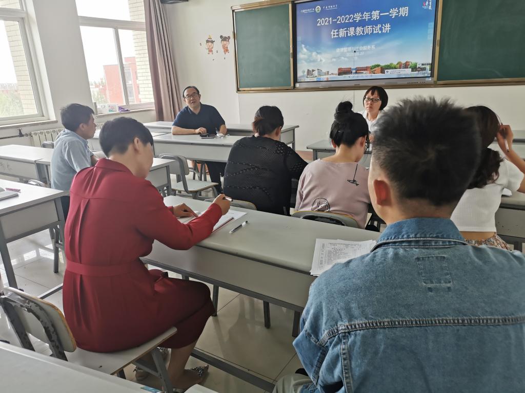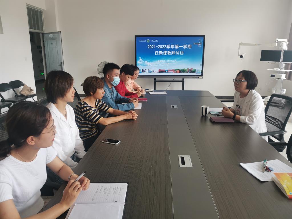 为顺利推进“双高校”建设,切实加强教学质量监控,促进教学水平和教学质量进一步提升,8月27日下午,健康管理与社会服务系,在竞新楼组织2021-2022学年第一学期任新课教师试讲活动,活动由系副主任左莹主持。
