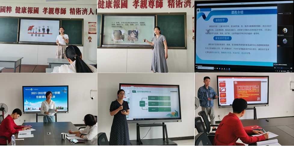 本次试讲活动在408会议和405教室分两组进行,健康系5名任新课教师以及4位校内外兼职任课教师进行了试讲。教师们从课程设置、进度计划、教学目标等方面对新任课程做了讲述,并对选取的课程章节进行了试讲。绝大多数试讲教师思路清晰,内容充实,讲述流畅,教态大方,讲课过程精彩纷呈。