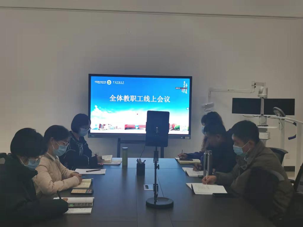 最后,马东华主任代表班子留守校园一线的老师们感谢和祝福,并与居家办公和线上教学的每位老师进行了交流,全体老师纷纷表示要全力做好线上教学、重点任务的推进工作。马东华主任总结到:疫情防控工作不能松懈,全体教师要继续保持高度警惕,把思想和行动统一到自治区及学校疫情防控相关会议精神上来,严格遵守各级疫情防控部门要求,积极配合防控工作,以高度的政治站位和责任担当,保障疫情防控特殊时期正常教学和“双高”建设任务、专业群建设等重点工作的开展。大家齐心协力、共克时艰,相信没有一个冬天不可逾越,没有一个春天不会到来。