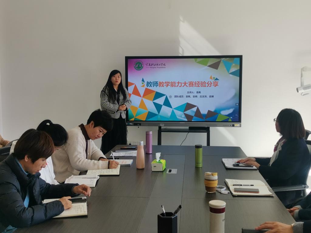 会上,智慧健康养老服务与管理教研室主任袁枫老师代表2021年教师教学能力比赛国赛奖获团队从赛前准备、精选内容、教学设计和规范文稿四个方面为大家详细解读了养老护理课程参赛团队的备赛经验;特别是对比赛文件政策的精准解读、岗课赛证融通的养老护理课程的选择、产教深度融合的教学团队组建及分工、参赛教学文件视频提交前的反复打磨、请自己母亲做“标准老人模特儿”支持比赛等备赛细节和其中的酸甜苦辣做了倾囊分享,让老师们对教师教学能力比赛有了系统深刻的认识,让大家深刻感受到教学能力比赛国赛三等奖这个成绩背后的残酷竞争、艰辛付出和团队协作的点点滴滴。