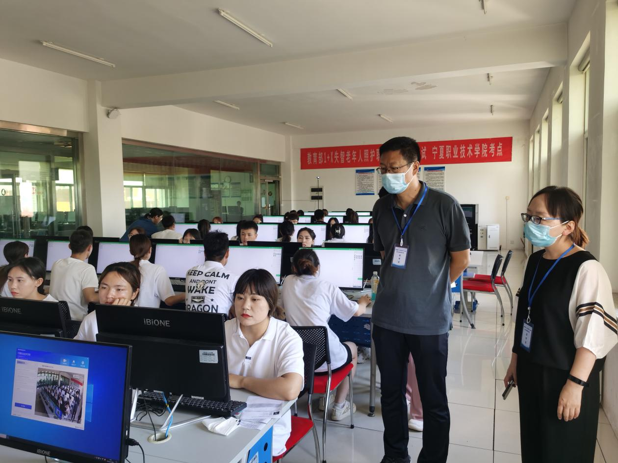 6月18日,教育部“1+X”失智老年人照护职业技能中级考试在公司成功举办。学校教务处处长李献智、健康管理与社会服务公司副经理左莹巡考,考试由健康管理与社会服务公司承办。