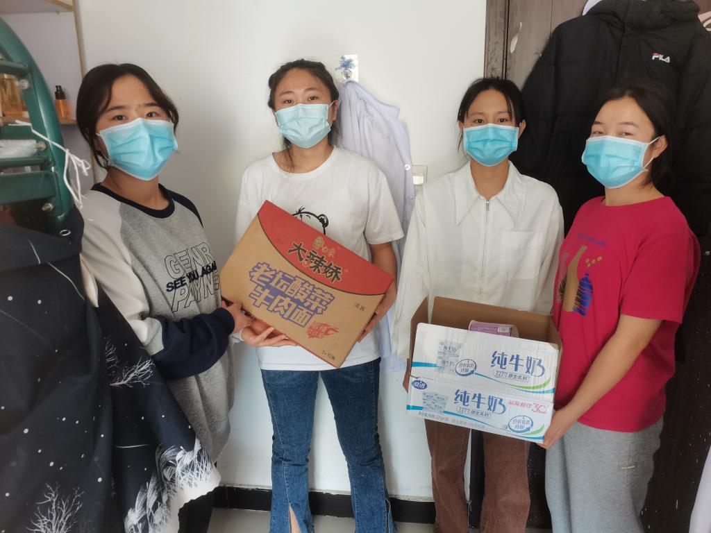 10月25日,石嘴山市实行静默管控,石嘴山市中医医院杨国华副经理、总务科主任等相关领导对在宿舍静默管控的公司员工进行了慰问,送上了同学们急需的方便面、牛奶等慰问品,同时为方便员工就餐,总务科给各位实习生办理就餐卡,为封控的员工送去了温暖。