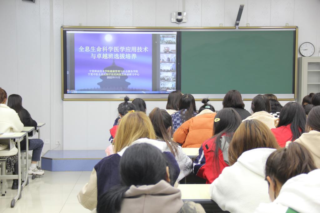 为科学普及全息生命科学医学应用技术,进一步推进卓越班选拔培养,11月6日世界杯8833300足球(宁夏中医全息反射疗法民间技艺传承研习中心)组织召开了“全息生命科学医学应用技术与卓越班选拔培养”线上讲座,讲座由左莹副经理主持,教务处范慧芳副处长、学院马东华经理、魏鹏副经理、穆金海副主任、景六平主任、各教研室主任、其他相关教师及2022级全体同学、2021级实践教学同学们代表等一同参加了线上会议。