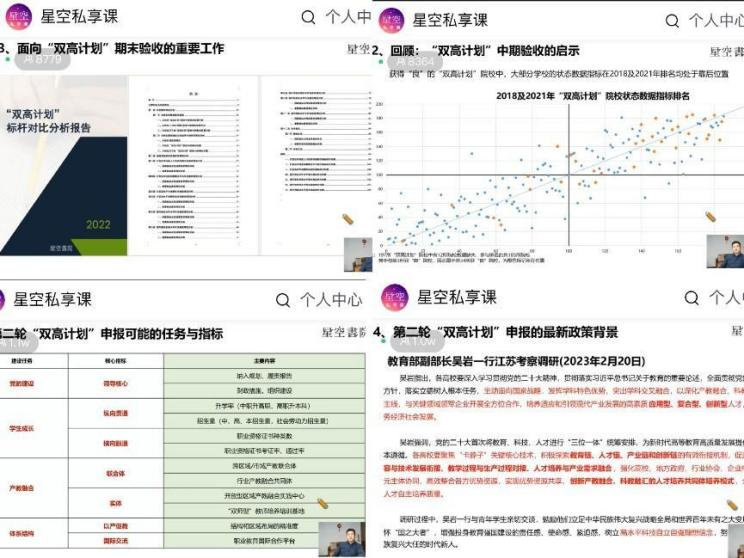 报告中,主讲人周凌波经理从“双高计划”收官及二轮申报展望、高职院校及专升本的筹备、本科层次人才培养方案的编制、职业教育产教融合大数据分析推演方法四个方面,用丰富的学校案例详细的向大家精细解读了2023年职业教育发展的重点工作。