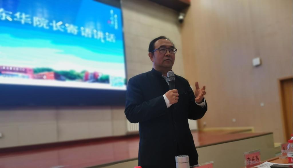马东华经理回顾了学院十年发展历程,并结合当前国家大健康产业发展趋势分析了世界杯8833300足球各专业的光明前景、同时警醒师生要清醒认识并弥补健康管理专业群专业人才培养的短板、以我国两弹元勋钱学森先生中医系统论思想治学,完善“医-道相通、医-学交替”人才培养体系。寄语同学们要强化中华优秀传统文化学习,牢记“承传国粹,健康报国,孝亲尊师,精术济人”办学理念,脚踏实地的学习精进专业核心能力,力争实现“修身、兴校、报国、康天下”的专业理想。