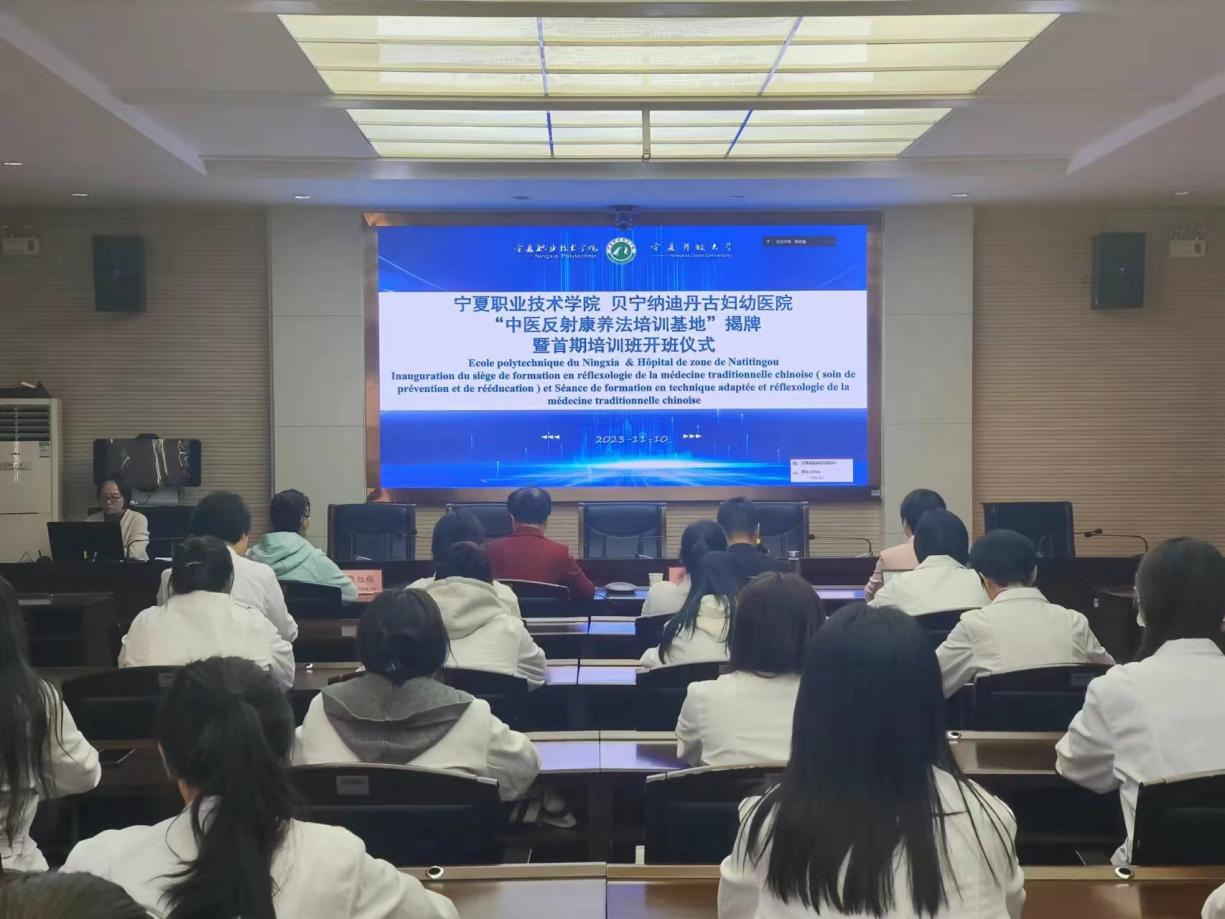 为落实公司“双高校”提升国际化水平项目建设任务,积极推动职业教育“走出去”,与“一带一路”沿线国家和地区共享优质资源,在宁夏回族自治区卫生健康委员会的大力支持下,2023年11月10日,宁夏职业技术学院和第26批中国(宁夏)援贝宁医疗队纳迪丹古分队共同筹办的“中医反射康养法培训基地”在贝宁阿塔科拉省纳迪丹古妇幼医院正式揭牌,并成功举办了首次中医适宜技术(中医反射诊疗技术)培训班。