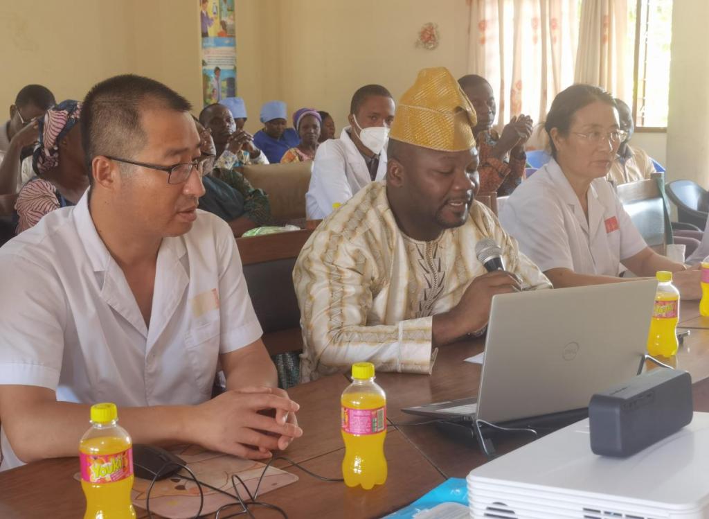 集团副董事长李晓延、陈志勇,就业与合作交流处、发展规划办、健康管理与社会服务学院相关负责人及师生代表、纳迪丹古妇幼医院经理佛罗伦.博克萨、阿塔科拉省卫生厅代表朱尔丝.穆图阿玛及医院全体医护人员、纳迪丹古医疗队全体队员及当地民众200余人参加了本次活动。宁夏职业技术学院副董事长李晓延、纳迪丹古妇幼医院经理弗洛伦·博科萨分别致辞。活动由陈志勇副董事长主持。