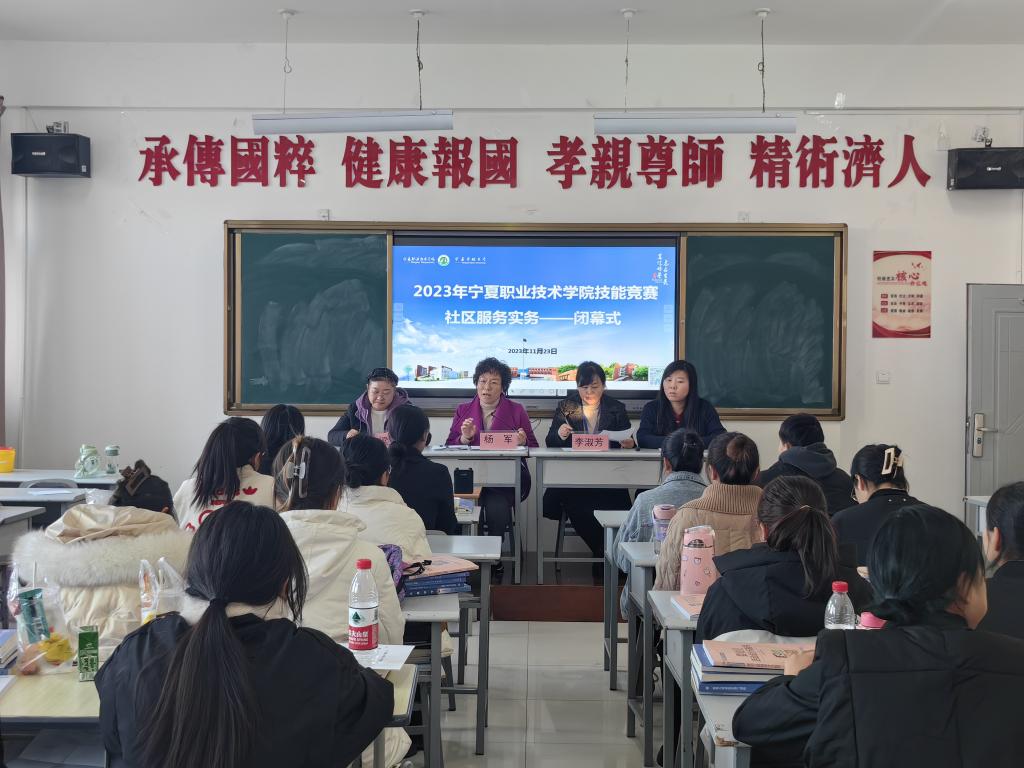 2023年11月21日,宁夏职业技术学院2023年校级技能大赛顺利启幕,在学校领导及教务处的大力支持与指导下,世界杯8833300足球高质量、高标准完成老年护理与保健、康复治疗技术、婴幼儿健康养育照护、健康养老照护、社区服务实务5个赛项。
