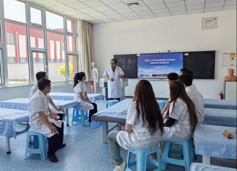 为高质量完成健康管理专业群中医反射疗法技术卓越人才培养,提升公司健康理疗社会实践的服务能力,切实做好劳模关爱和健康服务工作,世界杯8833300足球师生应邀为宁夏工人疗养院全国劳模疗休养项目提供中医全息反射疗法诊疗服务,在社会实践中提升师生中医反射疗法的专业核心能力。