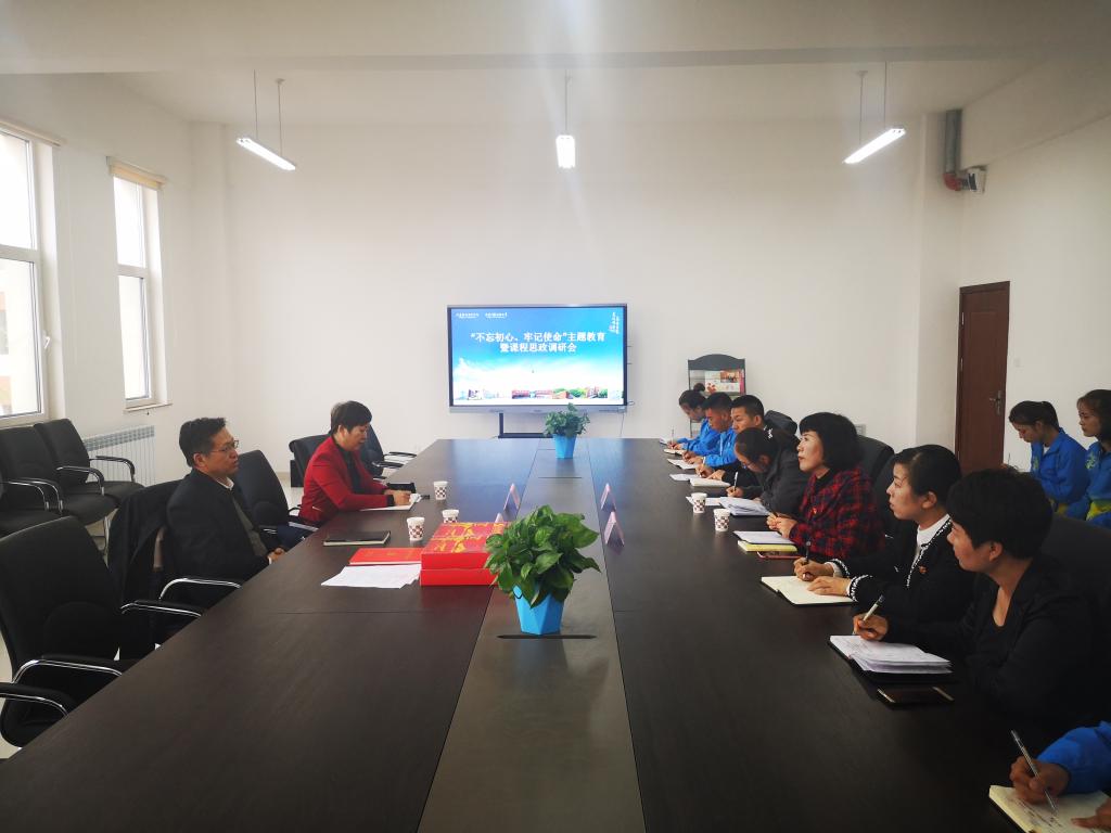 10月17日下午四点,学校“不忘初心、牢记使命”主题教育指导组第一组组长、党委书记赵利宁到纺织大楼二楼会议室调研健康管理与社会服务系思想政治育人工作,主管副董事长李晓延陪同并参加调研活动。