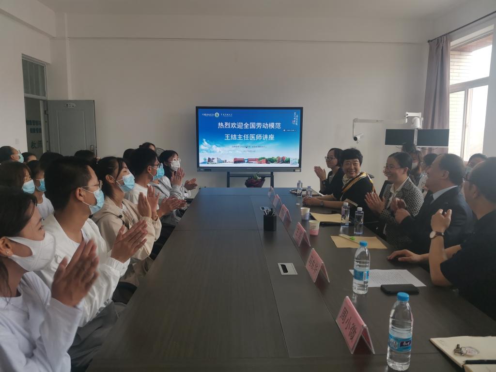 最后,马东华主任对王结主任医师的到来表示衷心的感谢。同时希望全体师生能够以此次活动为契机,牢记时代赋予的责任,要以先进模范人物为榜样,在各自岗位上尽心尽力,尽职尽责,将劳模精神、工匠精神融入学习生活中,全面激发师生的责任意识、爱国情怀和奉献精神。