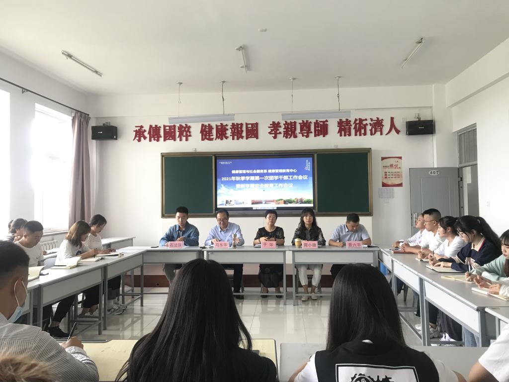 健康管理与社会服务系于8月31日下午召开了2021年秋季学期新学期安全工作会议暨第一次团学干部工作会议,系党支部书记于华、系主任马东华、系党支部副书记周小微、员工办公室主任景六平、石法强老师以及全体团学干部参加了此次会议。会议由景六平老师主持。