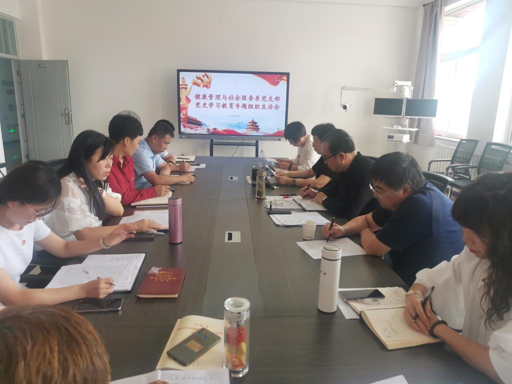 8月27日上午,健康管理与社会服务系党支部召开“党史学习教育专题组织生活会”,系部全体党员参加。会议由系党支部书记于华主持。