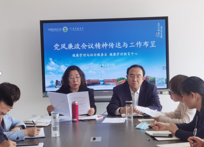 4月7日下午,健康管理与社会服务系在竞新楼C段408会议室召开党风廉政警示教育专题会议。会议由系党支部书记于华主持,系部全体教师参加会议。