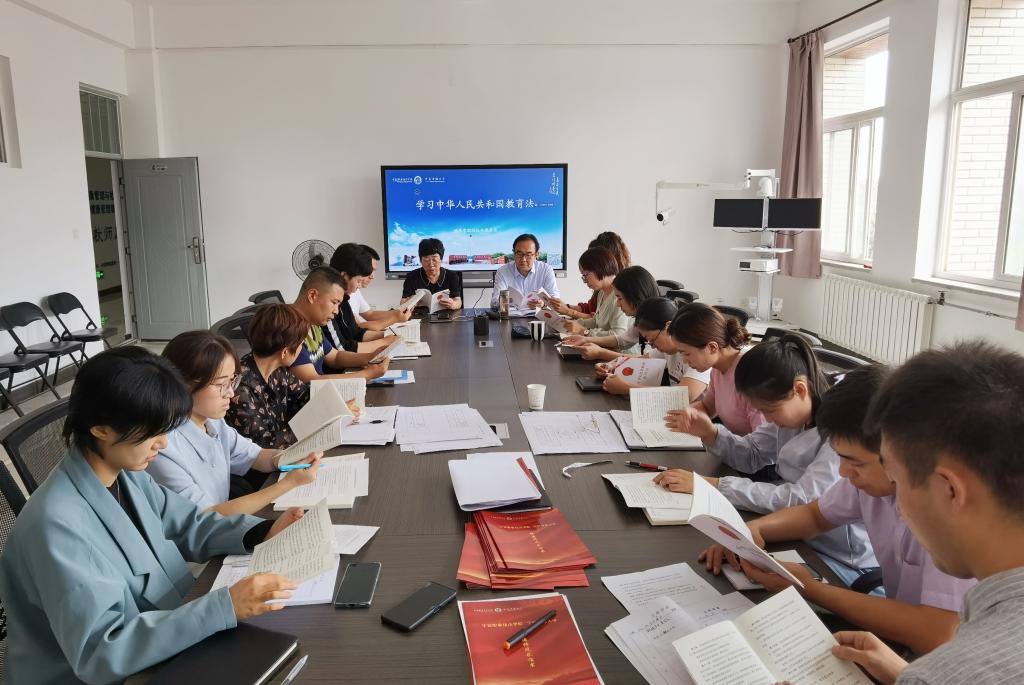 9月18日中午,健康管理与社会服务系在竞新楼C408会议室组织系部全体教师学习《中华人民共和国教育法》,活动由党支部书记于华主持。
