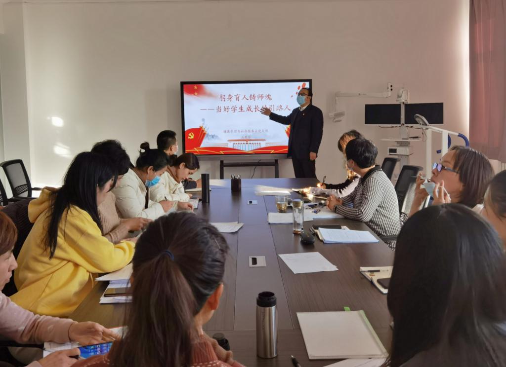 12月4日下午,健康管理与社会服务系党支部组织政治理论学习,系党支部副书记、主任马东华同志以“躬身育人铸师魂、当好员工成长引路人”为题,为系部全体党员教师讲党课,党支部书记于华主持。