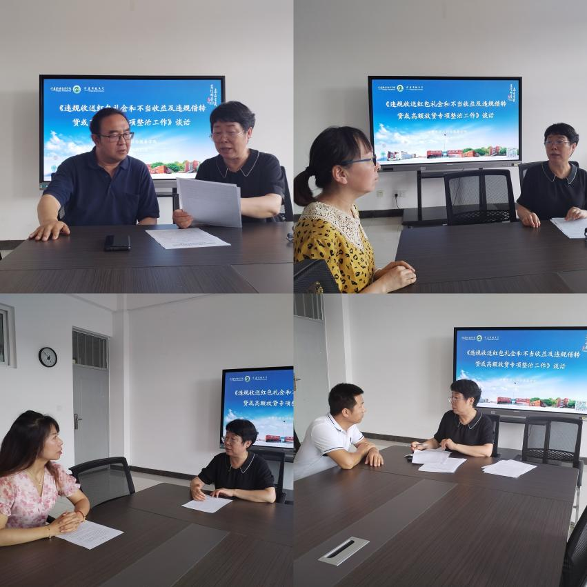 会议传达了学校关于违规收送红包礼金和不当收益及违规借转贷或高额放贷专项整治工作推进会精神,学习了关于违规收送红包礼金和不当受益及违规借转贷或高额放贷专项整治工作相关文件,对下一步专项整治工作进行了全面部署。要求全体教师进一步提高思想认识,细化工作措施,严格按照方案的时间进度、目标任务、具体要求实施,主动自查自纠,深化整改。会议强调,全体党员同志要提高政治站位,深刻把握党风廉政建设的重要性紧迫性,提高党性觉悟,始终保持政治清醒,时刻讲规矩、守纪律,坚持令行禁止,自觉接受监督。