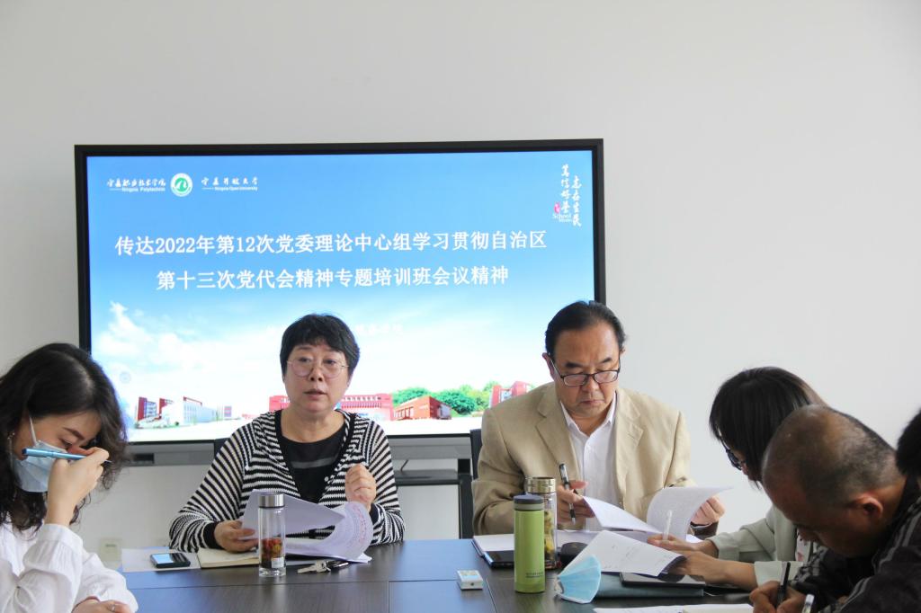 首先于华书记传达2022年第12次党委理论中心组学习贯彻自治区第十三次党代会精神专题培训班会议精神。会议要求,全体教师要以学习宣传贯彻好习近平总书记视察宁夏重要讲话和重要指示批示精神及自治区第十三次党代会精神为契机,切实把思想和行动统一到习近平总书记重要讲话精神上来,统一到党中央决策部署上来,自觉在思想上政治上行动上同以习近平同志为核心的党中央保持高度一致,深刻领会习近平总书记重要讲话和重要指示批示精神以及开展“大学习、大讨论、大宣传、大实践”活动的重要意义,在悟深悟透中强化责任担当。要自觉按照自治区第十三次党代会报告主要任务《分工落实方案》要求,紧密对接“五大战略”“三区建设”“六新六特六优产业”“六大提升行动”等目标任务,找准各自在大健康事业发展的结合点、着力点、切入点,针对学院工作中的短板弱项,大胆探索、创新举措、精准施策,把学习成果转化为持续用力推动健康管理与社会服务学院 健康管理教育中心高质量发展上,以实际行动庆祝党的二十大胜利召开。