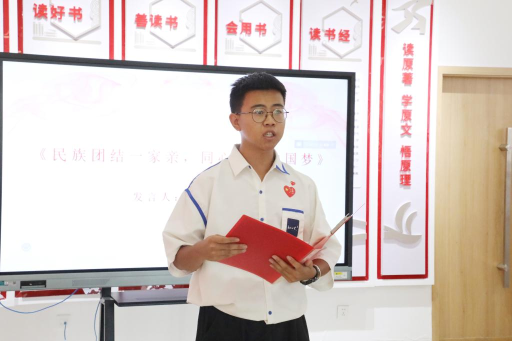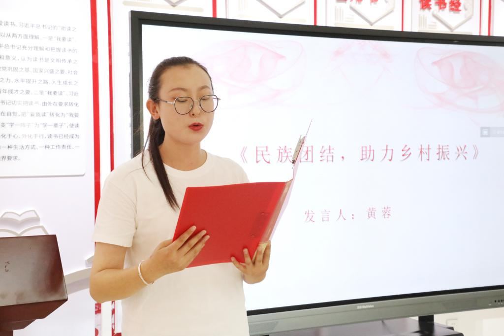 2022级中医康复二班黄蓉以自己的亲身经历描述了家乡经济的快速发展和回族同胞思想发生的变化。柴锦春在交流发言中号召各族青年员工要互相尊重、团结友爱,共建和谐校园,携手共创祖国美好明天,以崭新的风貌迎接党的二十大胜利召开。