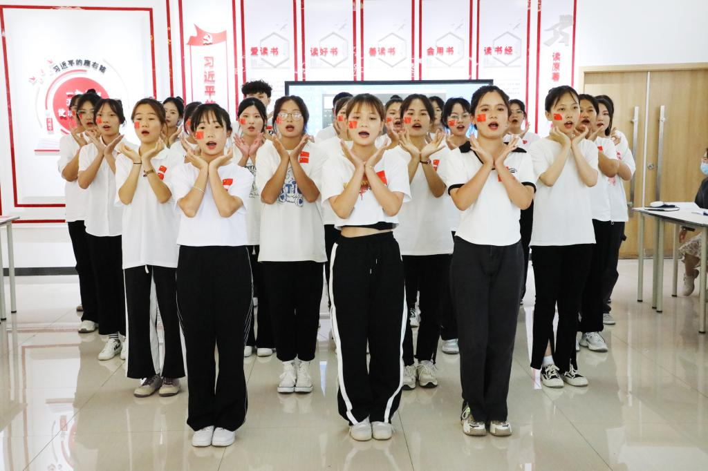 2022级中医康复一班的全体同学齐唱歌曲《爱我中华》