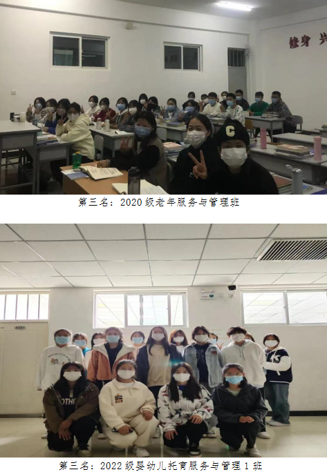 加油声、呐喊声、欢呼声此起彼伏!经过3个小时的激烈角逐,最终2020级健康管理3班凭借顽强拼搏的团结精神获得第一名,2020级健康管理4班、2022级健康管理班获得第二名,2020级老年服务与管理班、2022级婴幼儿托育服务与管理1班、2022级婴幼儿托育服务与管理2班获得第三名。