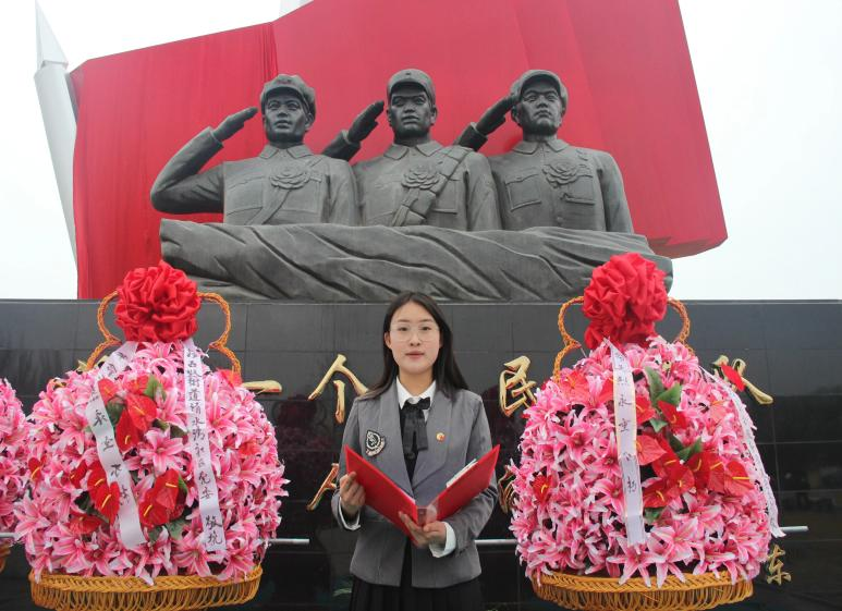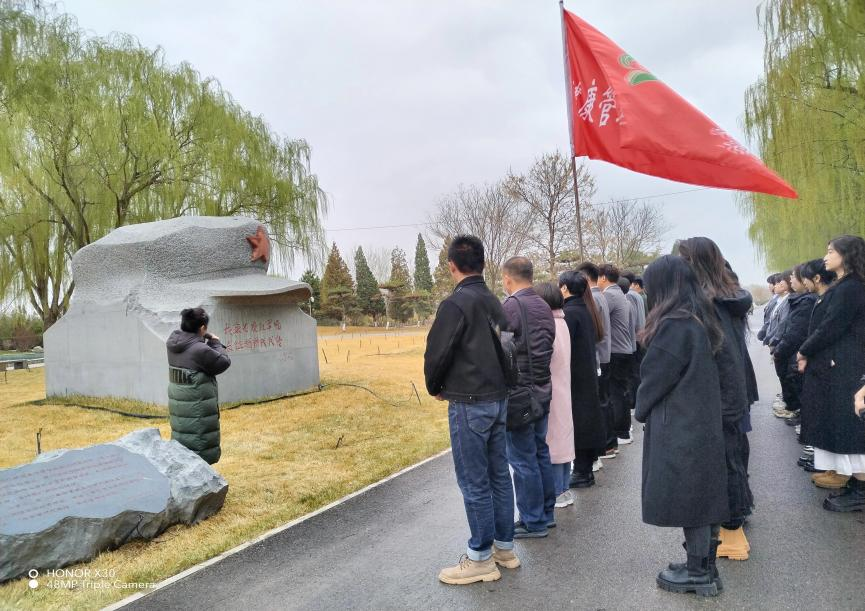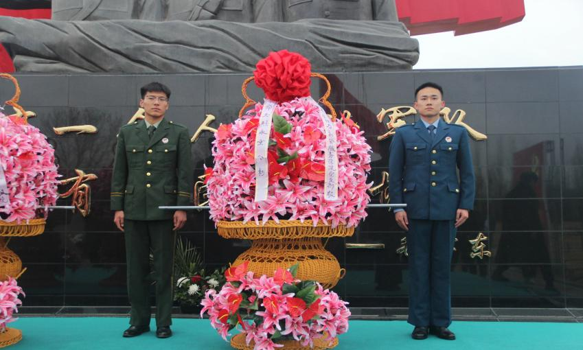 鲜花绽放,细雨绵绵,伴随着《献花曲》的旋律,2名员工迈着整齐坚定的步伐,抬起花篮,正步走向烈士纪念碑,敬献花篮。党支部书记于华缓步上前、仔细整理花篮挽联,表达对烈士深切哀思和崇高敬意。