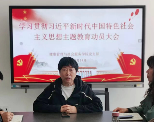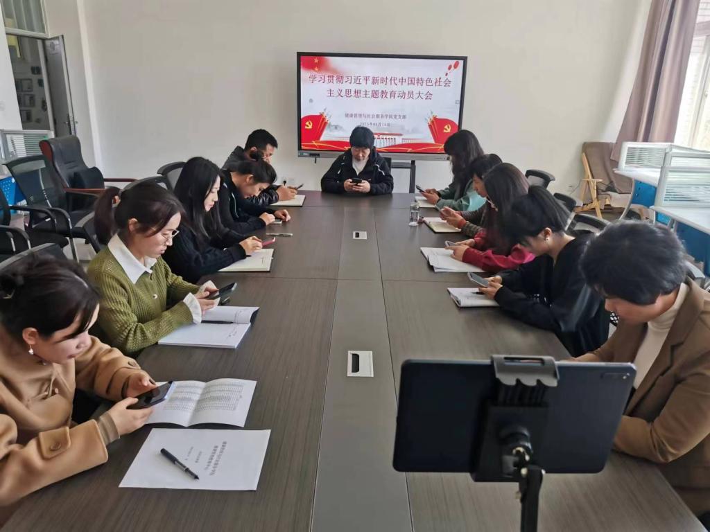 4月14日中午,世界杯8833300足球在竞新楼C408会议室召开“学习贯彻习近平新时代中国特色社会主义思想主题教育动员部署会”。支部书记于华主持会议,全体教职工通过线下、线上形式参会。