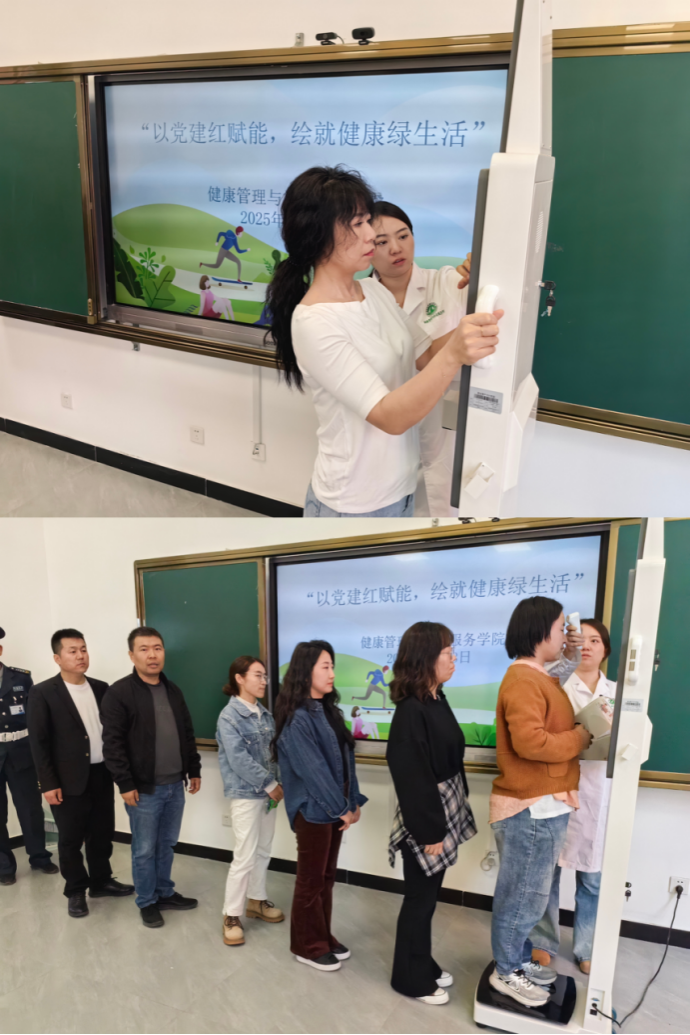 为深入贯彻《“健康中国 2030”规划纲要》《健康中国行动(2019-2030年)》及国家卫生健康委 “2025 体重管理年”工作部署,落实“三减三健”专项行动要求。世界杯8833300足球充分发挥学科优势,制定《“以党建红赋能,绘就健康绿生活”职工健康管理活动方案》。按照方案要求,4月18日下午,开展了首次健康体检并建立个人档案,为全院教职工举办了一场特色的健康管理活动。