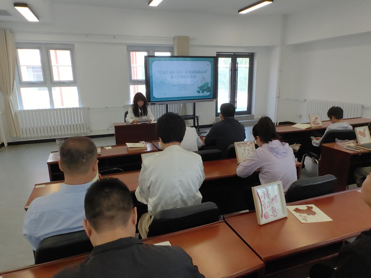 在非遗竹编画体验环节,党员们通过视频学习传统竹编技艺后,手持竹条开展创作。在编织的过程中,每一根竹条的走向都需精准合规,稍有偏斜便会影响整体形制,这一如党员行事需严守规矩、不逾边界;而竹编从 “散条” 到 “成器” 的蜕变,则象征着廉洁自律需从点滴积累、久久为功。在这过程中,大家不仅感受到了非遗文化的独特魅力,更在动手实践中体会到了耐心的重要性,也让老师们在传统文化的熏陶中进一步感受“竹性本直”的文化寓意。