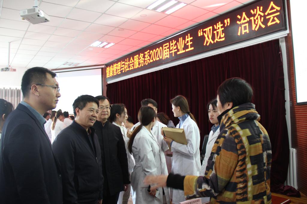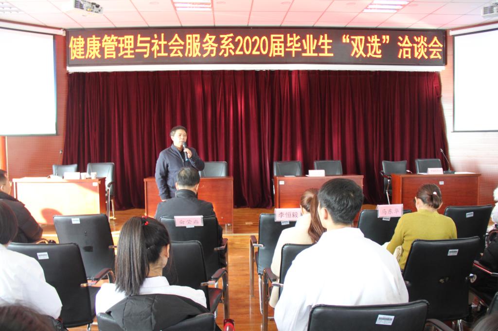 为切实做好毕业生就业工作,构建毕业生与企事业用人单位的交流平台,积极为用人单位输送所需的职业人才,12月30日上午,健康管理与社服务系召开2020届毕业生“双选”洽谈会,就业与合作处处长李恒毅、系部主任马东华、副书记俞莹磊、副主任左莹、办公室副主任杨柠、任课教师、辅导员、班主任及2017级全体同学参加了双选会。