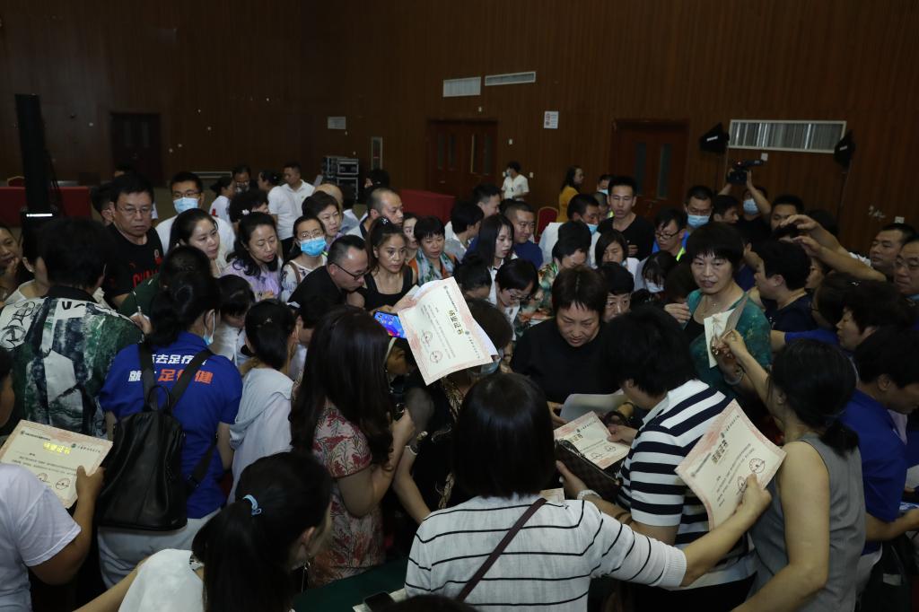 公司与中国足部反射区健康法研究会联合赠送的中药防疫香囊和结业证书一抢而空,观众们都已拿“官方”文件为荣。