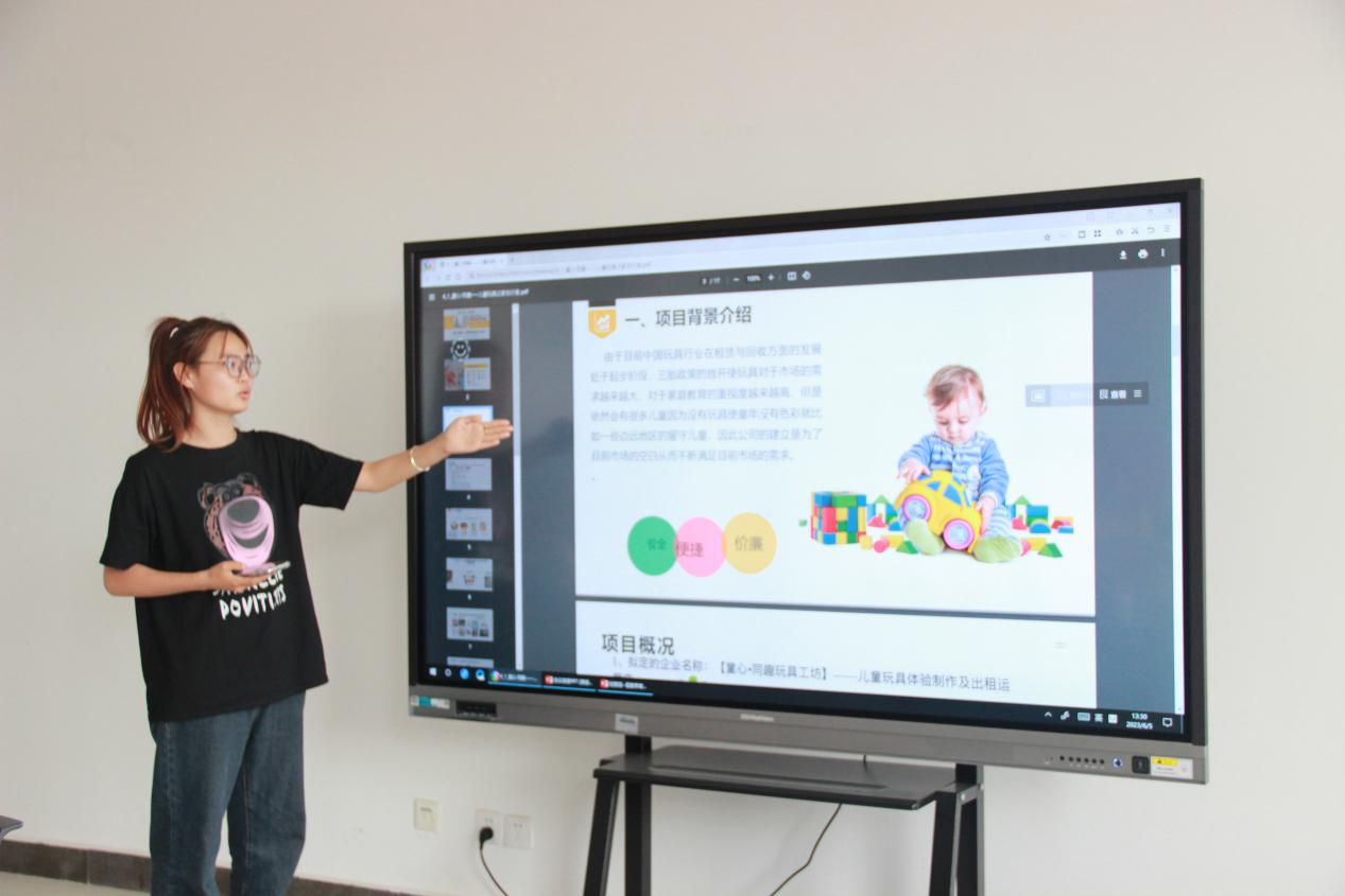 纳嵘老师对本届大赛的评审要求、项目计划书的撰写和路演时间的把控等多个因素进行了详细分析,并毫无保留地分享了个人多年的参赛经验,各项目负责人通过PPT按照大赛要求进行模拟路演,纳老师依据2023年双创大赛区赛标准分别从项目背景、核心优势、商业模式、团队建设、教育维度、社会价值六个维度进行了逐一指导。