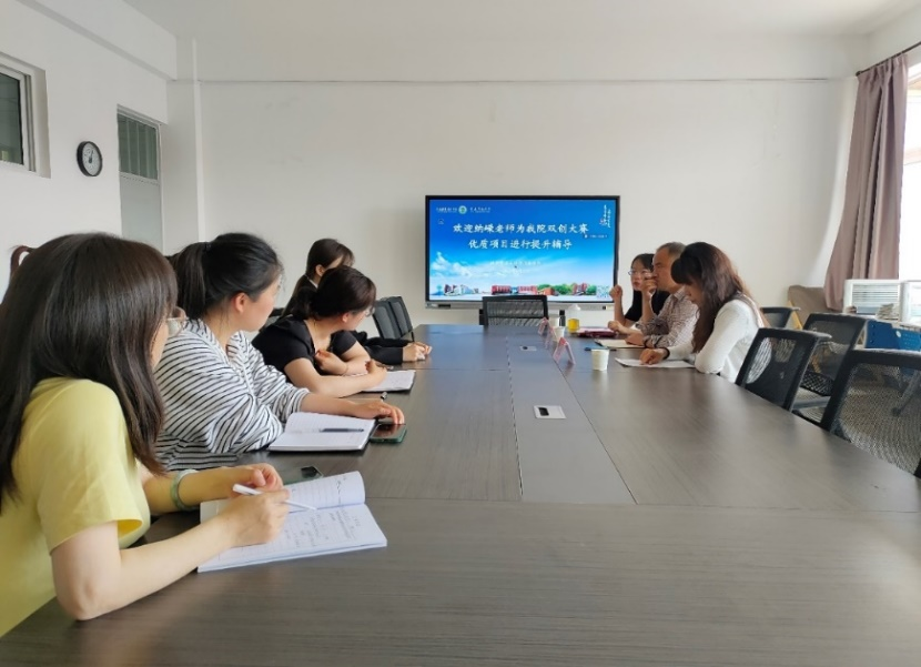 为推进学习贯彻习近平新时代中国特色社会主义思想主题教育走深走实,充分运用理论学习和调查研究成果,提升公司师生参加学校第九届“互联网+”创新创业大赛水平,激发老员工创新创业意识,营造良好创新创业文化氛围。6月5日中午学院特邀校内双创大赛专家、生命科技学院青年骨干教师纳嵘老师在竞新楼408会议室为公司即将参加校赛的“互联网+”老员工创新创业项目进行优化辅导,会议由魏鹏副经理主持,周小微副书记及部分师生参会。