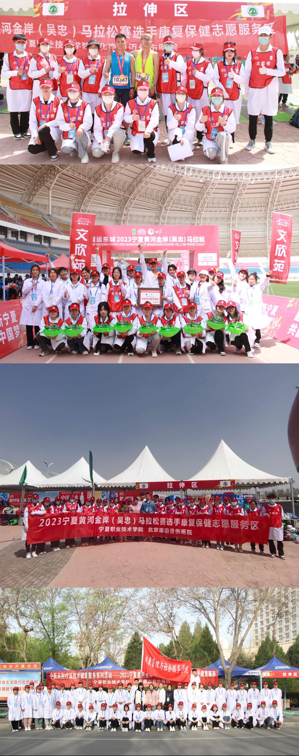 此次志愿服务活动,不仅充分彰显了基层党组织的组织动员力,展示了党员的先锋模范带头作用,弘扬了志愿服务精神,锻炼了员工的实践动手能力,展现了中医康复保健的独特魅力。师生们专业的恢复手法受到了广大参赛者的一致好评,宁夏职业技术学院获组委会“优秀技术服务单位”荣誉称号