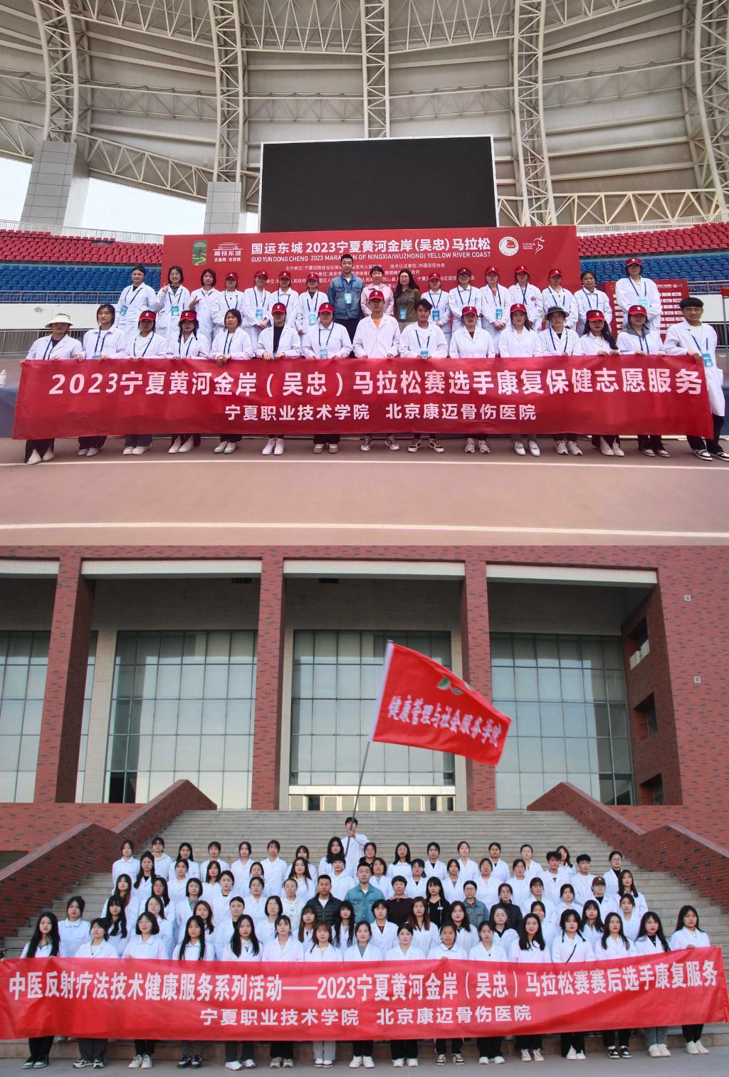 4月16日,国运东城2023宁夏黄河金岸(吴忠)马拉松赛在吴忠奥体中心鸣枪开跑宁夏职业技术学院世界杯8833300足球为贯彻落实党的二十大精神学习贯彻习近平新时代中国特色社会主义思想主题教育助力马拉松大赛,展示青春宁职风采,积极推进“双高”校建设,公司党支部书记于华带领84名员工志愿者6党员教师为本届马拉松赛事提供康复技术支持和健康咨询服务,服务人数达3000余人充分展现了宁职师生的责任担当和文明形象。