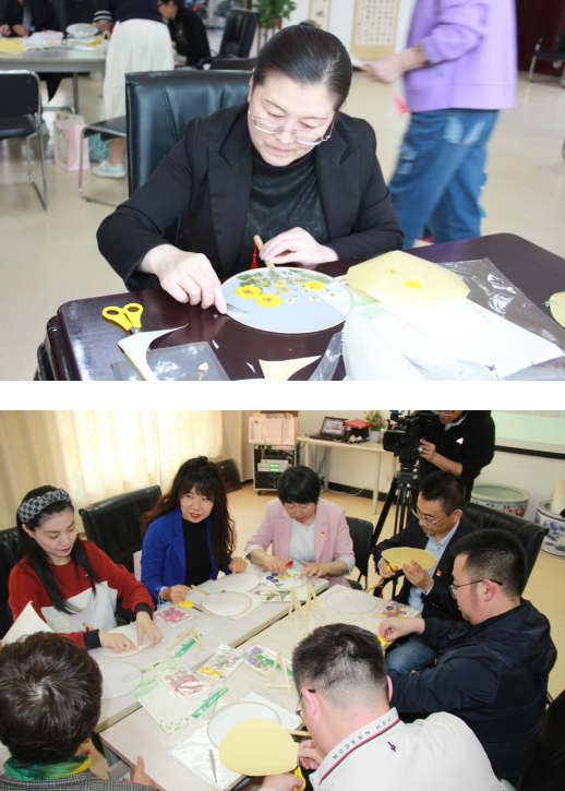 本次活动还开展了宁夏职业技术学院公司党支部与教务处党支部联合举办的主题党日活动——“压花团扇品古韵,孝敬长者爱陪伴”的压花团扇教学活动,国家花卉园艺师高级技师左莹讲解了压花团扇制作方法,公司志愿者师生与长者一同完成压花团扇制作,既锻炼了长者手部精细动作功能,又对志愿者师生进行美育德育的培养,让师生运用康养专业知识对长者进行园艺康养疗法,将社会志愿服务落实落地,实现长者“老有所学、老有所乐”,为社区养老服务拉开新篇章。