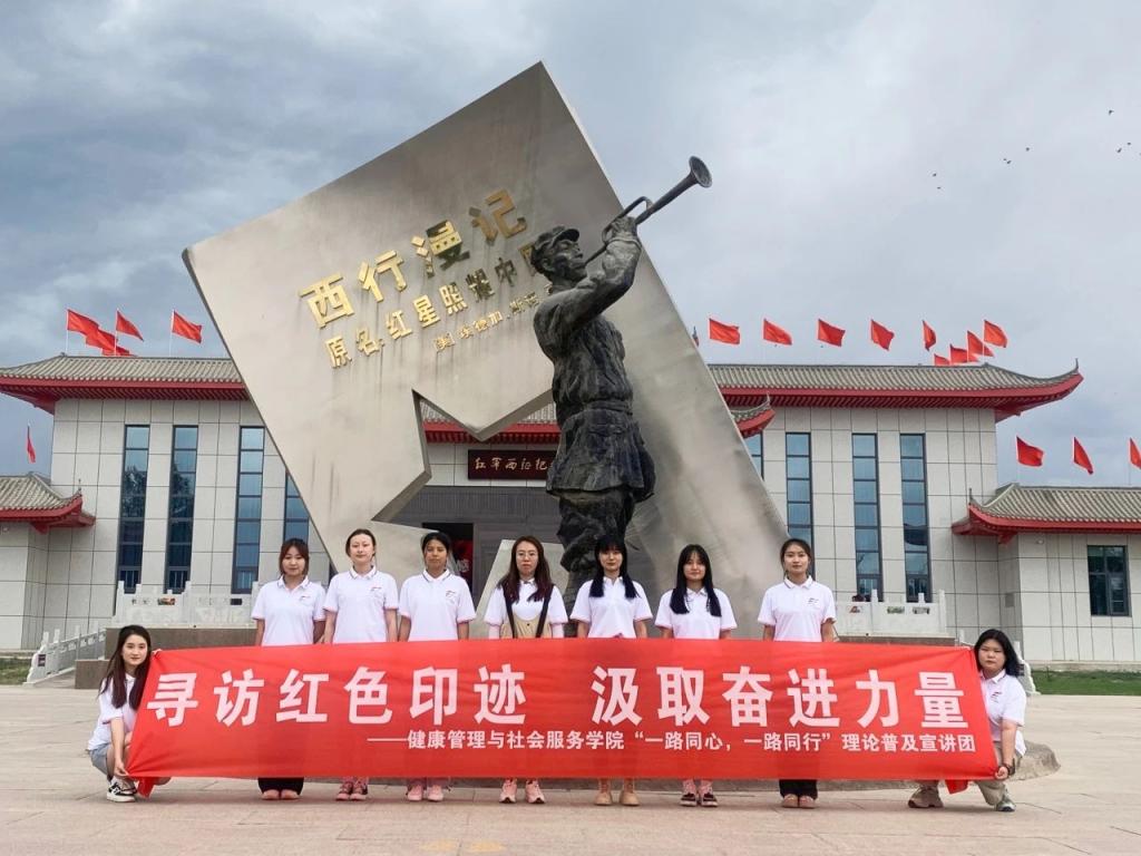 7月23日“一路同心,一路同行”理论普及宣讲团首站来到吴忠市同心县红军西征纪念园,纪念园于2006年10月建成,由红军西征纪念馆、红军小号手的大型雕塑、红军电台遗址等组成。学院团委副书记刘艺萌和辅导员薛垠鑫带领同学们观看纪念馆内的历史文献、图片、文物,感悟红军西征的伟大胜利,汲取信仰力量,传承红色基因。