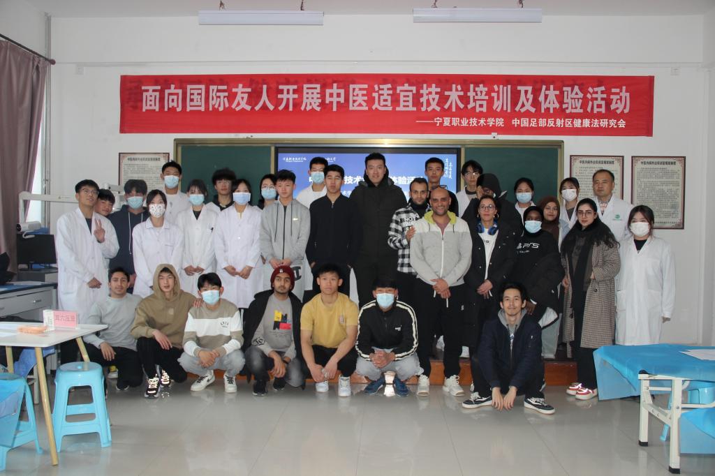 为向“一带一路”国家外国友人展示中医适宜技术尤其是中医反射疗法技术技能,宣传中华传统康养文化,并对标世界杯8833300足球承担的双高校国际化任务,在学校领导及就业与合作交流处的积极协调支持下,学院联合中国足部反射区健康法研究会于11月22日与25日分别为宁夏大学和北方民族大学职工开展中医适宜技术体验及培训活动,两校职工参与活动共计近100人。