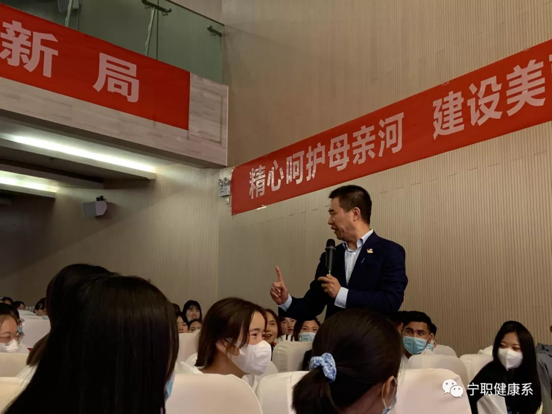 秋雨霏霏,宁职如画,9月14日上午8时,宁夏职业技术学院健康管理与社会服务系在图书馆报告厅举行“青春无悔 强国有我”2021级新生入学教育系列活动。系党支部于华书记、系主任马东华、系副书记周小微、系副主任左莹出席会议,员工工作办公室和系部办公室工作人员、全体2021级新生级2020级校内实践教学组同学参加会议,会议由周小微副书记主持。
