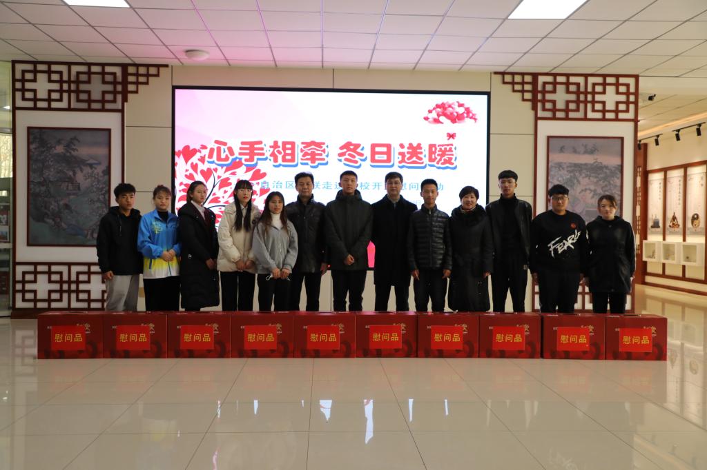 座谈会前,马军生理事长一行先后参观了智能制造、现代物流、产教融合创新中心、健康管理专业群实习基地、食用菌基地、智慧指挥中心及中医药中心,在员工工作部精心组织下开展了“心手相牵、冬日送暖”慰问活动,公司21名残疾人员工接受慰问品并回赠。
