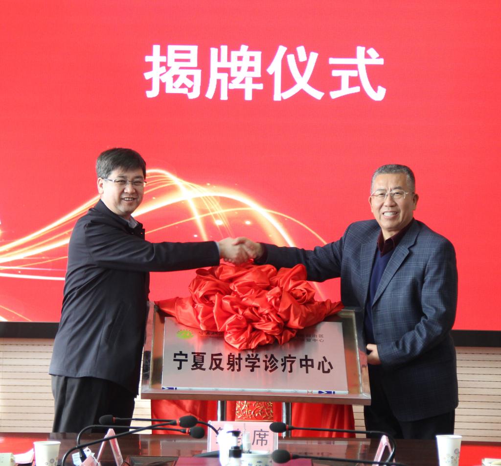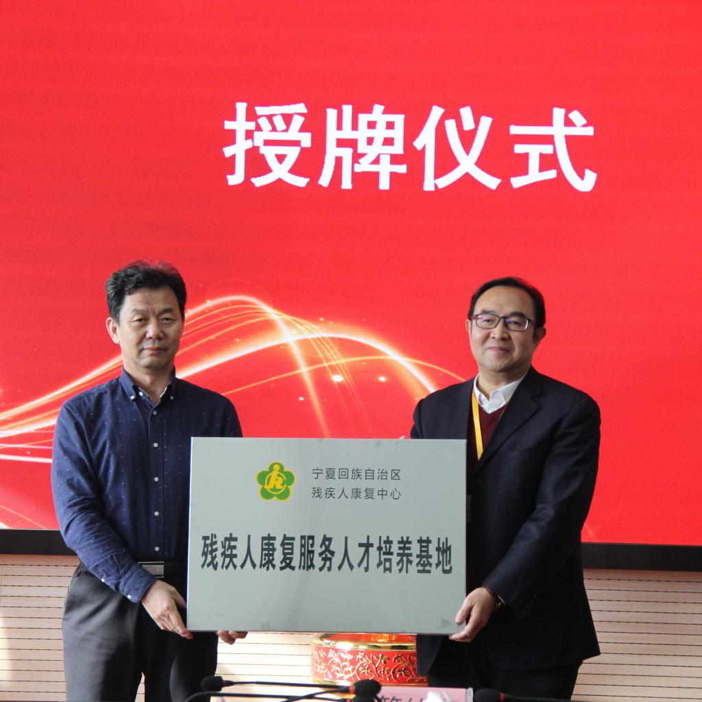 会上,马军生理事长与刘炜董事长共同为“宁夏反射学诊疗中心”揭牌;李晓延副董事长介绍了集团基本情况,与宁夏残疾人康复中心主任马占秀签署“康复人才培养与团队建设合作协议”并授“宁夏职业技术学院实习基地”牌匾;健康管理与社会服务系主任马东华接受了区残联副理事长董万军授予学校的“残疾人康复服务人才培养基地”牌匾。