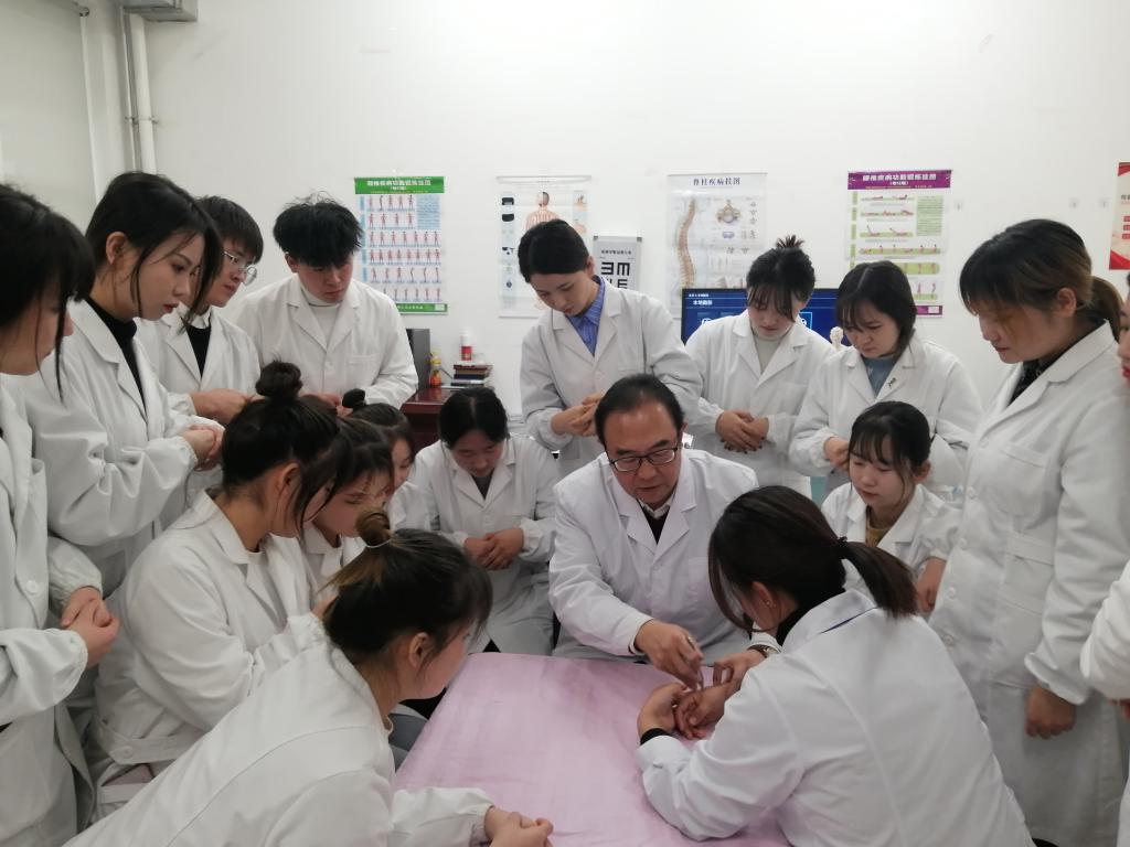 12月13日上午,全国行业技能大师、反射疗法课程主讲教师马东华在竞智楼A304教室,为同学们讲解手足全息诊疗技术和背部推拿等技术,解决同学们身心亚健康问题并交流技术难点,2020级校内组全体员工参加学习。
