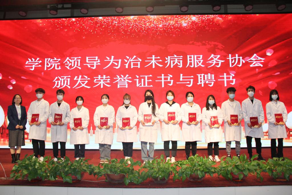 会上,左莹副经理宣读了《关于表彰2021年秋季实践教学先进个人的决定》《关于表彰治未病服务协会先进个人与颁发聘书的决定》,马东华经理、左莹副经理及教师代表为同学们颁发了荣誉证书和聘书。