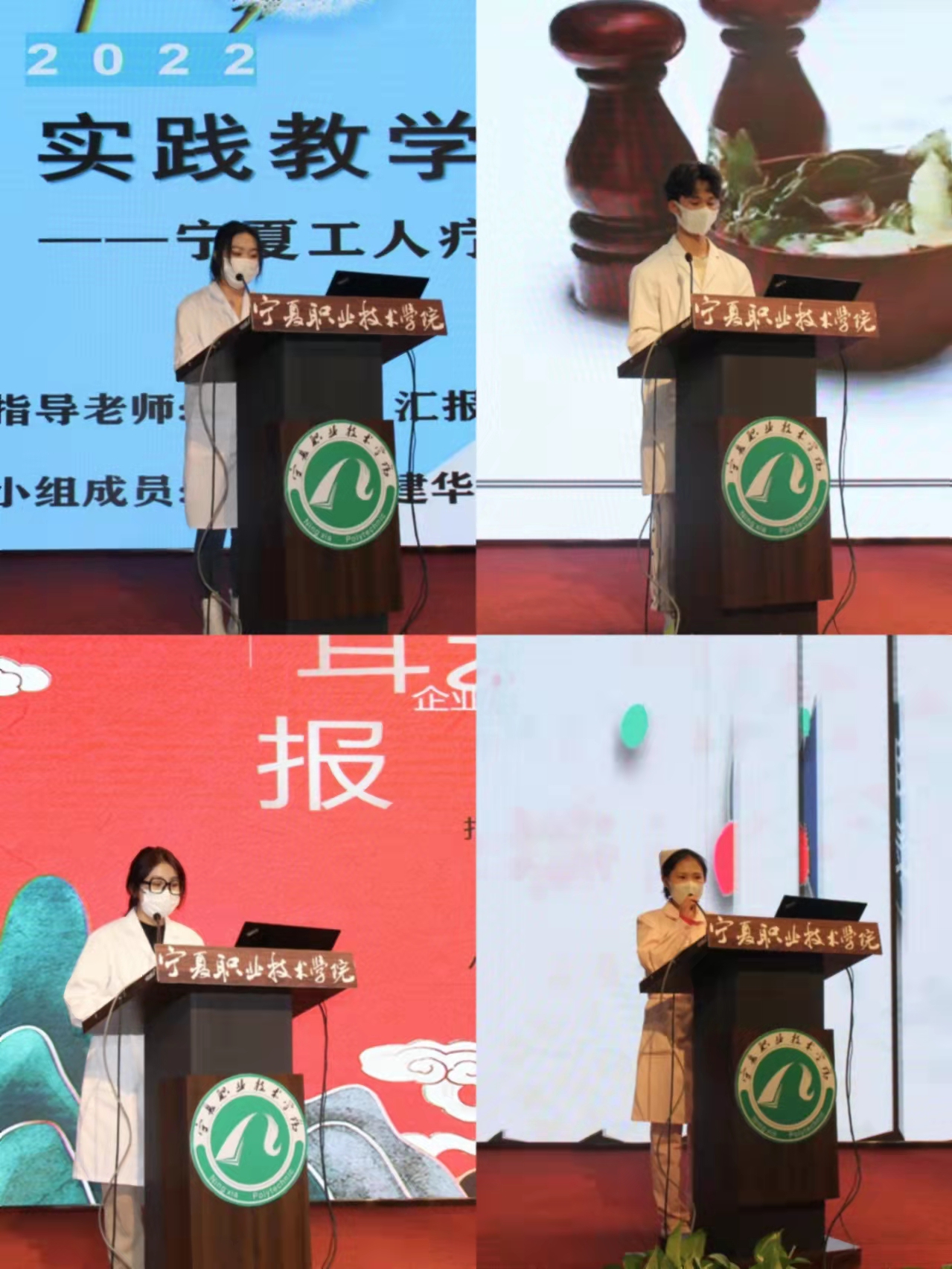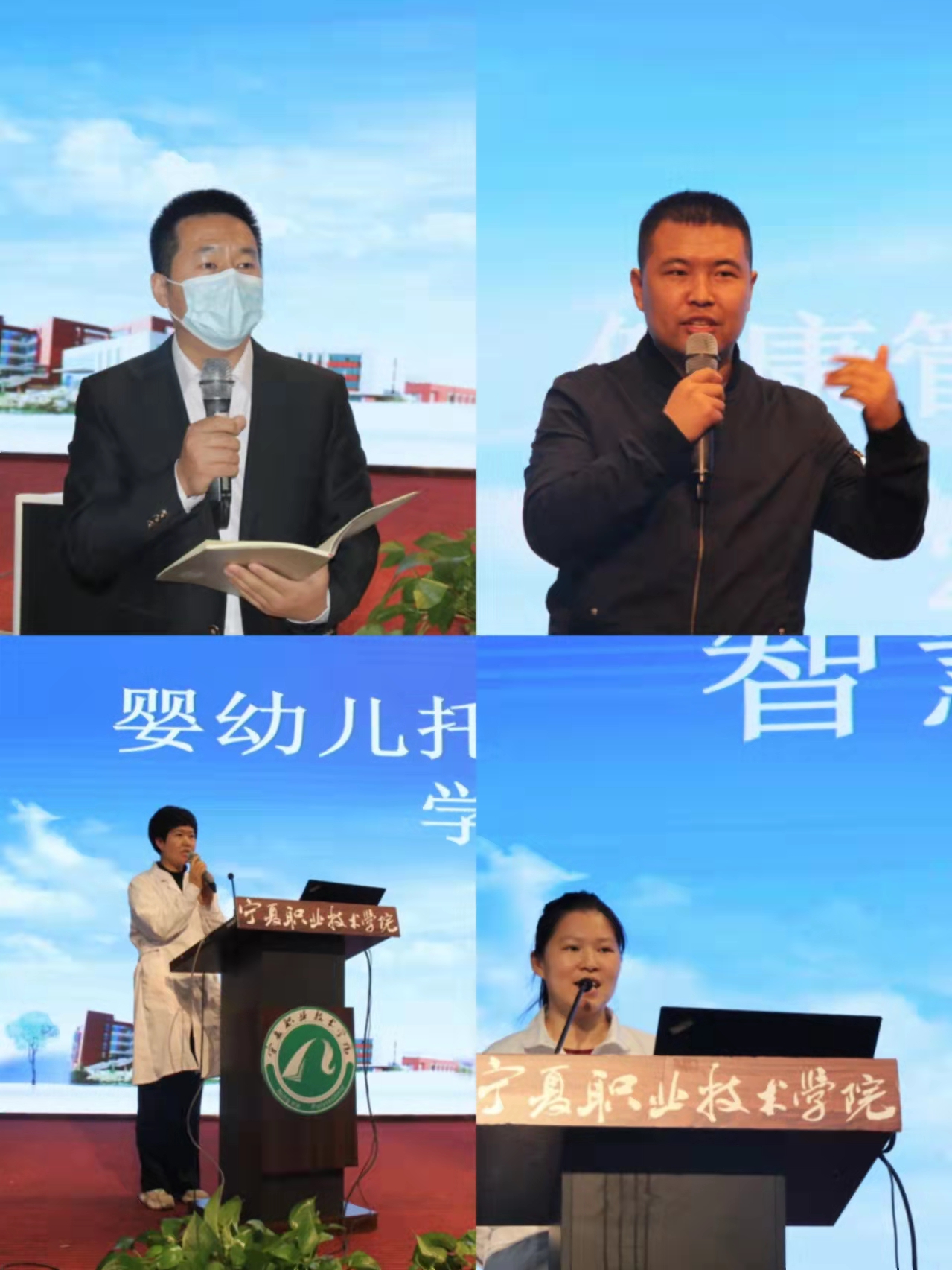 活动中,健康管理专业7位实践单位员工代表、智慧养老服务与管理专业3位员工代表、婴幼儿托育服务与管理专业3位员工代表通过PPT分享了各自小组在区内外各单位实践教学经历与收获。指导教师代表穆金海、景六平从专业角度、员工管理角度分别交流了各自的感受。