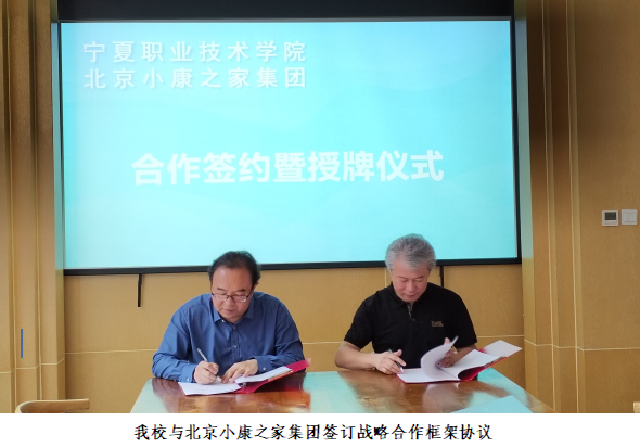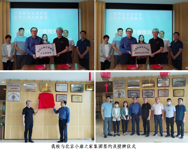 团队一行到北京小康之家开展考察调研,并代表公司与北京小康之家签订校企合作战略框架协议;双方互授宁夏职业技术学院健康管理专业群实习基地、北京小康之家集团有限公司产学研基地牌匾;共同为“宁夏职业技术学院中医反射康养法(北京)培训基地”揭牌,并就联合开展健康产业养老护理高端技能人才、中医全息反射技术高端技能人才培养等方面深入洽谈。对健康管理专业群员工的实践教学安排进行了具体对接,夯实了公司健康管理专业群员工高质量实习及未来就业的平台。