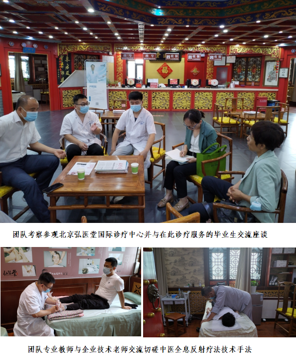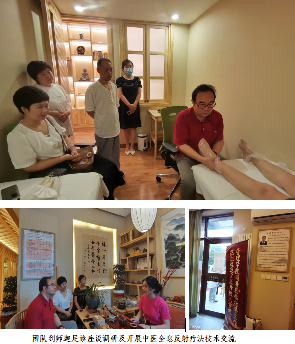 期间团队对接调研了位于北京顺义的远洋集团椿茂萱·和园、位于朝阳区国家使馆区的北京国医汇及北京朝阳区养老协会、北京朝阳区学前教育协会、北京弘医堂国际中医诊所有限公司等已合作及拟合作的行、医、企、联合体等机构,并就健康管理专业群中医全息反射疗法技术“卓越班”人才培养、(中医反射疗法核心技术、养老护理)助力国家“一带一路”倡议、员工高质量实习就业、专业群中医全息反射疗法技术在企业运营管理中的应用等进行了深入交流,并力争在9月下旬“驻华使节开放日”活动中应用包括中医全息反射疗法技术在内的中医内病外治技术对“一带一路”国家相关使馆友人的健康服务,展现高职院校的专业担当、责任担当与政治担当。